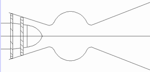 我所設(shè)想的飛機(jī)發(fā)動機(jī)如圖所示,與現(xiàn)有的飛機(jī)發(fā)動機(jī)相比,只有進(jìn)氣的壓縮蝸輪部分,沒有排氣的蝸輪部分,后段高溫部分只是一個空殼子。進(jìn)氣壓縮蝸輪由另一臺發(fā)動機(jī)帶動壓縮空氣。蝸輪錐頭可以向氣流方向運動,堵住進(jìn)氣口,成為箭發(fā)動機(jī)。一臺發(fā)動機(jī)有多種功能,這樣設(shè)計會有如下優(yōu)點: