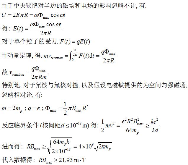 3、反應,加速1/4周后,粒子開始參與第一次反應, 與反應腔另一半入射的粒子在反應點處經磁場壓縮后對撞反應. 同時, 電場方向改變, 未反應的粒子在另一個半周繼續(xù)加速, 同時加注器補給燃料, 在另一個反應點再次參與反應. 如此循環(huán)往復, 不僅很好地利用了核燃料, 而且將反應集中在兩點, 能量的引出自然很方便。