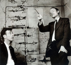 1951年~1953年在英國(guó)期間,沃森和克里克合作,應(yīng)用物理學(xué)、化學(xué)的新技術(shù)和生物學(xué)研究的新成果,用綜合的觀點(diǎn),把自己的創(chuàng)造性工作同前人的研究成就結(jié)合起來,提出了DNA的雙螺旋結(jié)構(gòu)學(xué)說,這個(gè)學(xué)說不但闡明了DNA的基本結(jié)構(gòu),并且為一個(gè)DNA分子如何復(fù)制成兩個(gè)結(jié)構(gòu)相同DNA分子以及DNA怎樣傳遞生物體的遺傳信息提供了合理的說明,成功地解決了DNA的三維結(jié)構(gòu)問題。