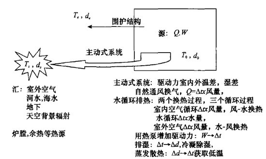 還有大量的環(huán)節(jié)都是傳質(zhì)跟傳熱互相之間的轉(zhuǎn)化。比如說新風除濕是通過很大的溫差,把空氣冷下來,使空氣中的水蒸氣凝結(jié)。此時冷卻的最后目的是為了凝水,為了除濕,產(chǎn)生d差或水蒸氣分壓力差。而蒸發(fā)冷卻則是利用d差,即利用水蒸氣分壓力差,通過蒸發(fā)使溫度降低,產(chǎn)生了溫差。這方面的問題太多了,我們總想搞到一個統(tǒng)一參數(shù)來統(tǒng)一刻畫溫度和濕度。但討論來討論去,大伙兒的一致意見是這是兩個過程,傳遞熱量是傳遞熱量,傳遞水是傳遞水,不要把這兩者攪和到一起兒。當兩者互相影響的時候,看你要干什么,站在傳熱的角度來看是犧牲了△d,濕度變成熱泵了,產(chǎn)生了驅(qū)動力。有時候是為了傳水,犧牲了一個溫度△T,產(chǎn)生了△d,幫助那邊傳濕,這個過程就是熱功轉(zhuǎn)換的過程,所以說這是熱功轉(zhuǎn)換的事,不是傳遞過程。熱量傳熱量,濕傳濕,是兩個獨立的過程,中間有好多的環(huán)節(jié)。熱濕是可以互相轉(zhuǎn)化的,但不存在統(tǒng)一的參數(shù)。